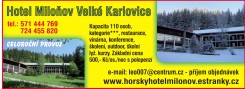 Velké Karlovice se nachází v chráněné krajinné oblasti Beskydy na úpatí Javorníků a Vsetínských vrchů. Jsou turisticky zajímavou a vyhledávanou lokalitou v každém ročním období. Nachází se zde kvalitní lyžařské sjezdovky určené pro začátečníky i pokročilé, udržované běžecké tratě, pěší a cyklo turistické trasy. Další sportovní a relaxační aktivity podporují svou vybaveností hotely a penziony. Zajímavými místy jsou: Prales Razula, pramen Vsetínské Bečvy, jezero, rozhledna Čarták, Galerie pod Solánem a Valašský Ateliér u Hofmanů. Ke kulturním památkám patří dřevěný římskokatolický kostel, fojtství v údolí Bzové, usedlost na Sihle a bývalý kupecký dům, kde se nyní nachází Karlovarské muzeum. Příjemnou návštěvu Velkých Karlovic - ráje turistů a lyžařů. Informační centrum - tel.: 571 444 039, e-mail: icentrum@velkekarlovice.cz